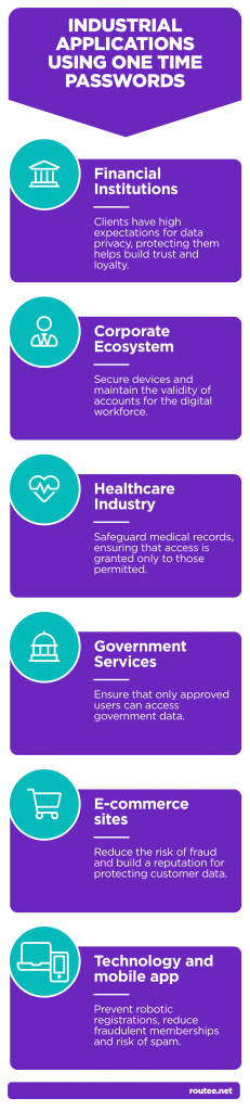 One time passwords (OTPs) can work as the second step in two-factor authentication and they are a popular choice for organizations looking to boost their security. In 2018, the global two-factor authentication market was evaluated at $3,5B and it is projected to reach $8,9B by 2024, as revealed by a Market Research Future study, while the OTP market was estimated at $1,5B in 2018 and will reach $3,2B by 2024. From banking to government, to healthcare, and retail, almost every industry is dependent on the OTP verification process in order to make clients feel secure and safe. So, without further ado let us take you through some important use cases of two-factor authentication using OTP.