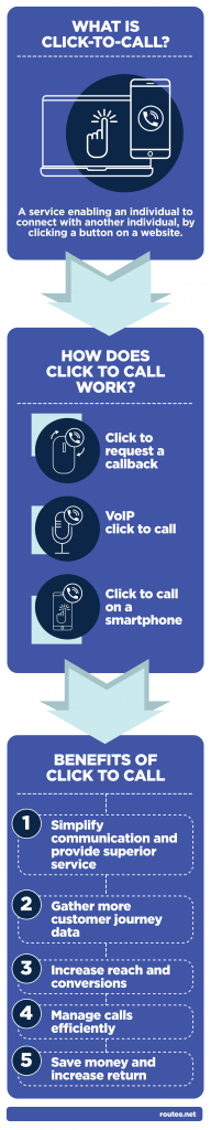 As we discussed in this post, click-to-call can provide a more efficient and quicker means to connect with your customers. This in turn can help you engage with them, solve their problems and remove any obstacles for a seamless communication process. In your efforts to achieve effective business-customer communication, we strongly recommend using a Click to call feature on your website. So, if you are ready to simplify communications for your customers and connect with them when they want to talk, now is the time to get started. Using Click-to-Call from Routee across your business is the perfect way to build your brand loyalty and make meaningful personal connections with each customer.