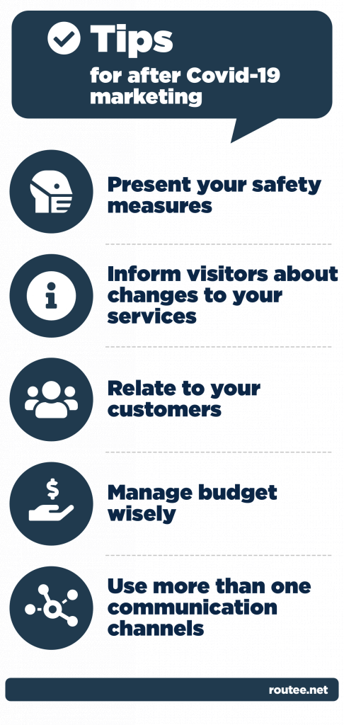 After you tell your customers what measures you have taken to keep them safe, then you need to explain what’s different to your hotel and the changes you had to make due to Covid-19. Changes may concern in-house services (no buffet available, no swimming to the pool, no spa services, etc.), methods of payment or rules visitors themselves must comply by (i.e., maintaining a distance of 3 meters from anyone). Feel free to include some promotional content in this communication, but remember to keep it subtle.